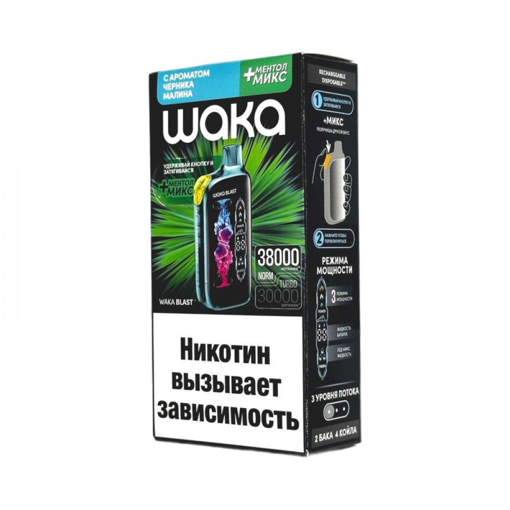 WAKA BLAST 38000 Hard - Черника малина + ментол микс - купить в Катайске